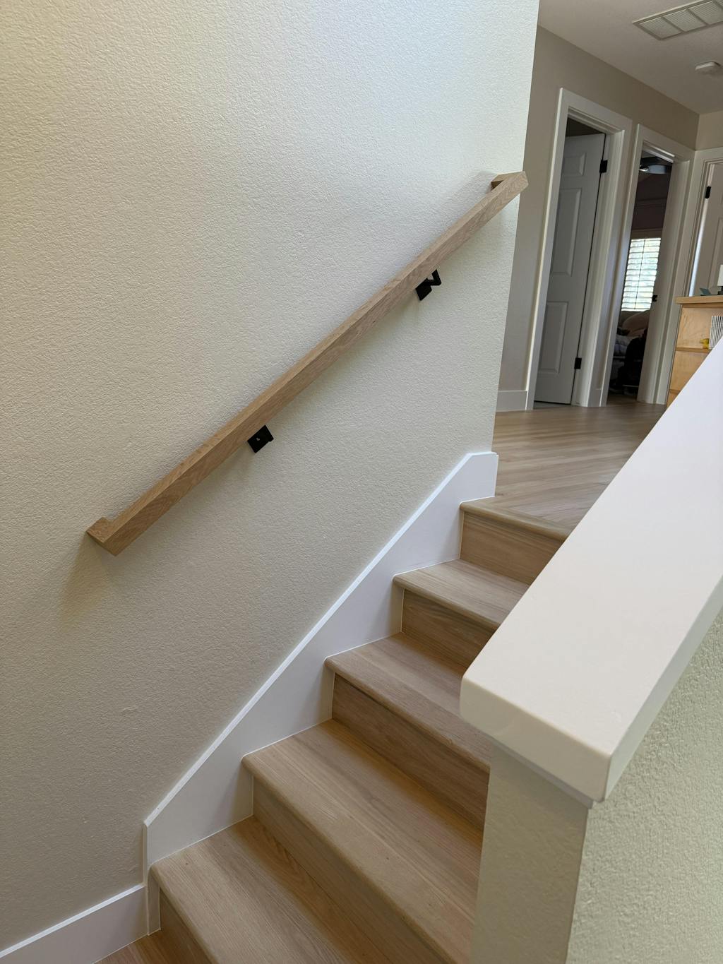LOVE my new handrails!! They are absolutely perfect. Our floors are red oak and we had them redone with a red out stain and then a natural stain. I wasn’t sure how the white oak rails would look with them but they are perfect!!! The sellers are fabulous, the rails were packaged to perfection, and the hand rails are of amazing quality. Thank you, thank you!!!