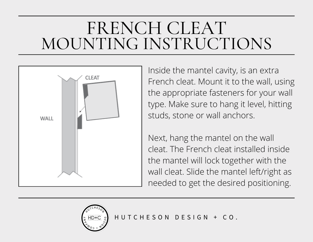 Slip or Cap Mantels are available upon request! When checking out simply add a note for special mounting method or reach out to us to customize yours today by using the chat button or send us an email hello@hutchesondesignco.com!
