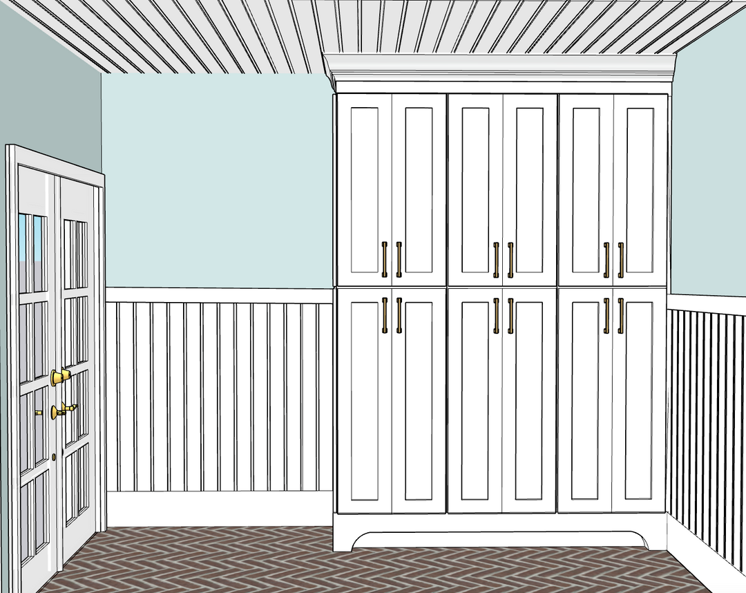 Our client was looking to add functional pantry storage just off their kitchen space. We used three 96"H pantry style cabinets & cut to a smaller depth to fit the space.