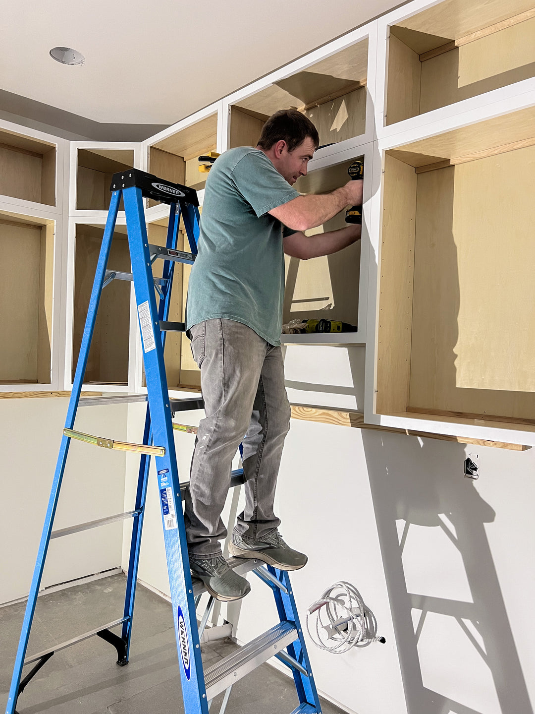 Kitchen cabinets and door-pull hardware were also installed by Matt + Hill.