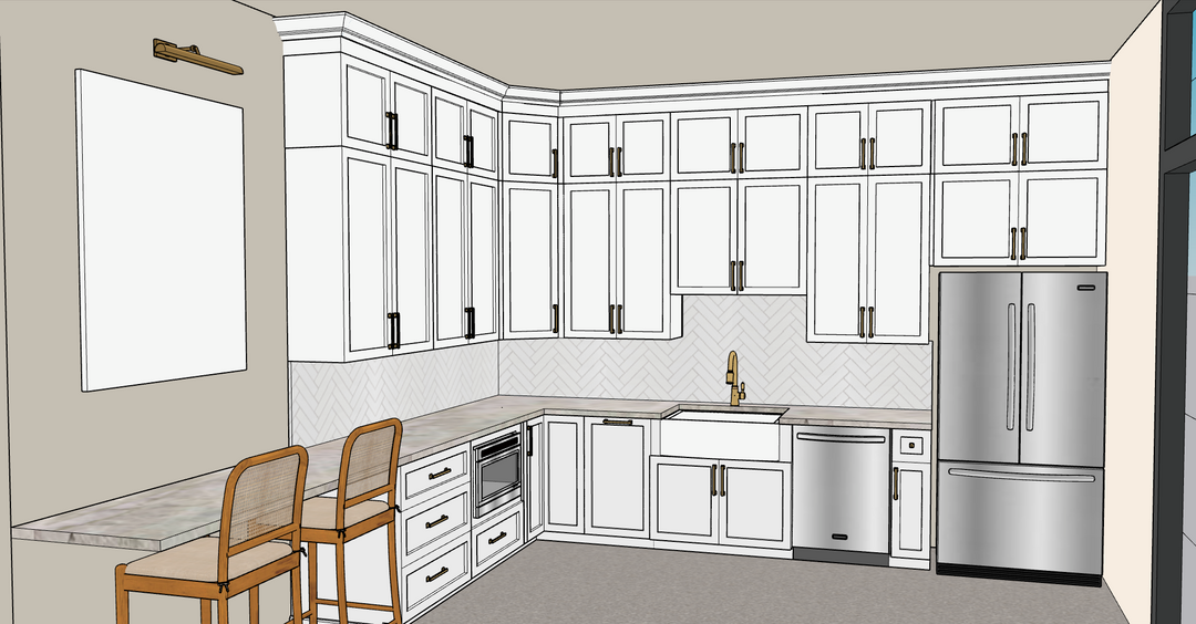 Starting with the overall layout for the office kitchen & break room, we designed the cabinet/appliance footprint.